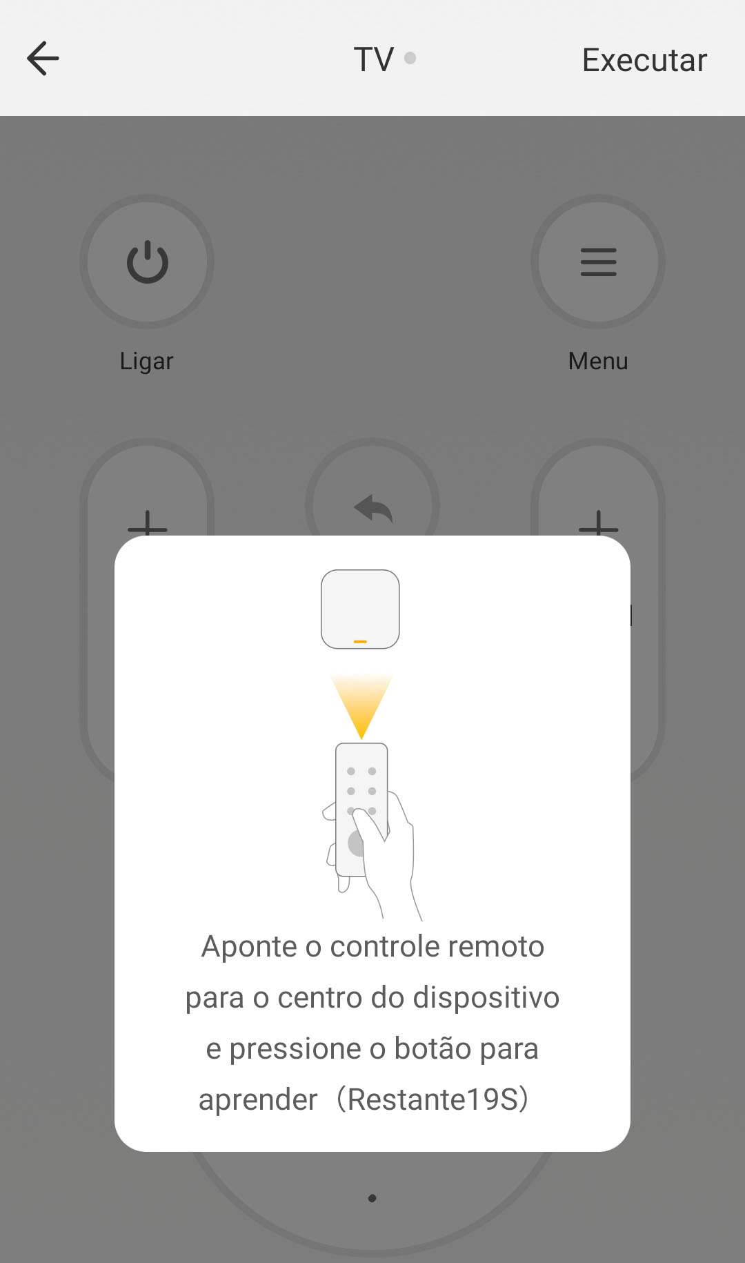 - Aponte o controle para centro do dispositivos