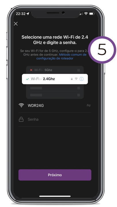 **Lembrete:** Você deve conectar na rede Wi-Fi de 2,4GHz.