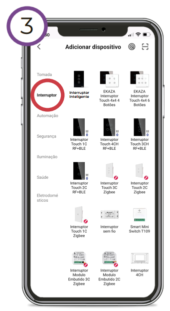 3. Selecione manualmente, "Interruptor" e depois "Interruptor Touch Wi-Fi".
