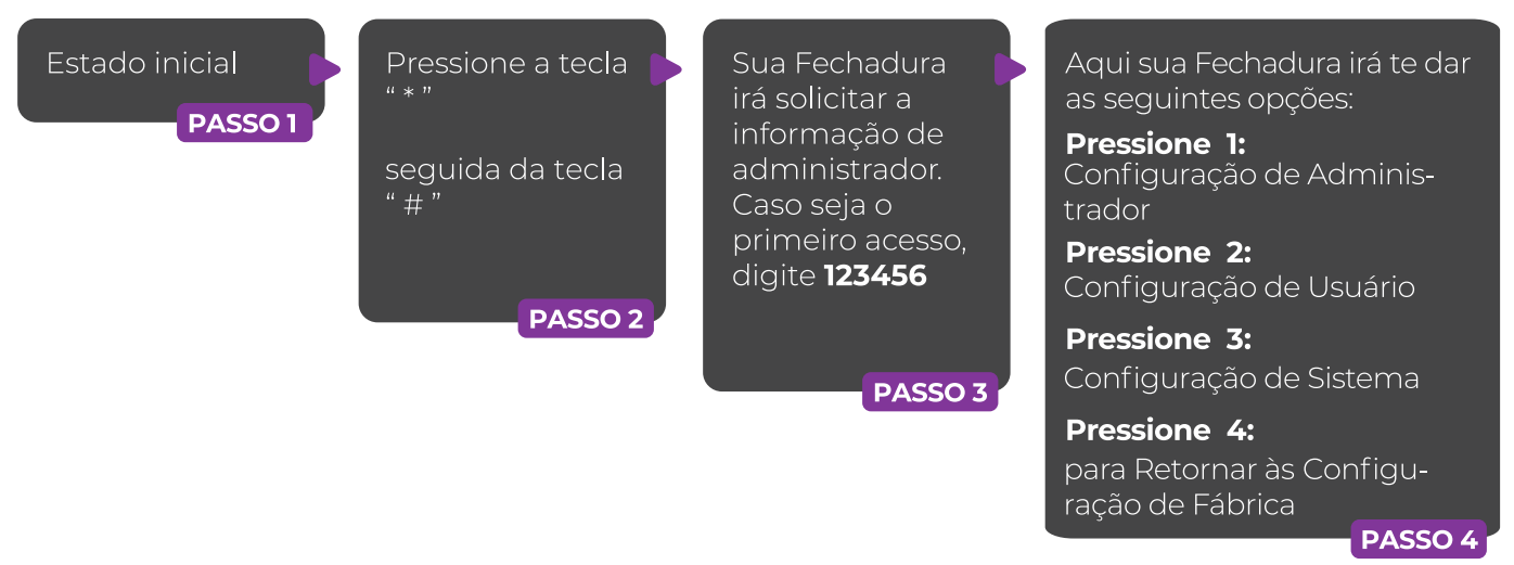 Após esses primeiros passos, agora inicie as configurações na fechadura.