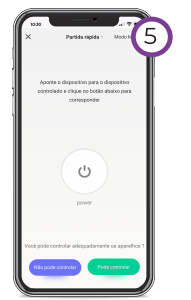 5. Aponte o controle EKAZA para o aparelho que quer controlar e clique no botão de teste do aplicativo (ex: Ligar/Desligar). Siga os passos do aplicativo para confirmar se os botões funcionam. Se necessário, tente outros conjuntos de códigos ("Próximo controle remoto").