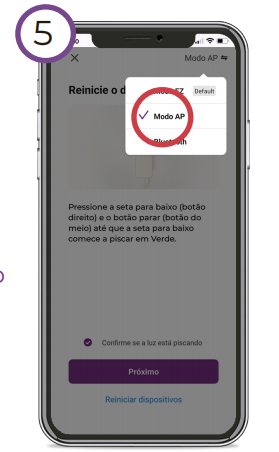 5. No canto superior direito da tela do App, selecione a opção "Modo AP".