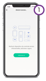 No app EKAZA, dentro do Controle Remoto Universal, toque para adicionar um aparelho para ser controlado.