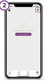 2. **Em seu smartphone, toque no botão "adicionar dispositivo"** no centro da tela para configurar o Nutri Alimentador 4L. Se já houver um dispositivo EKAZA, toque no botão **"+"** no canto superior direito.