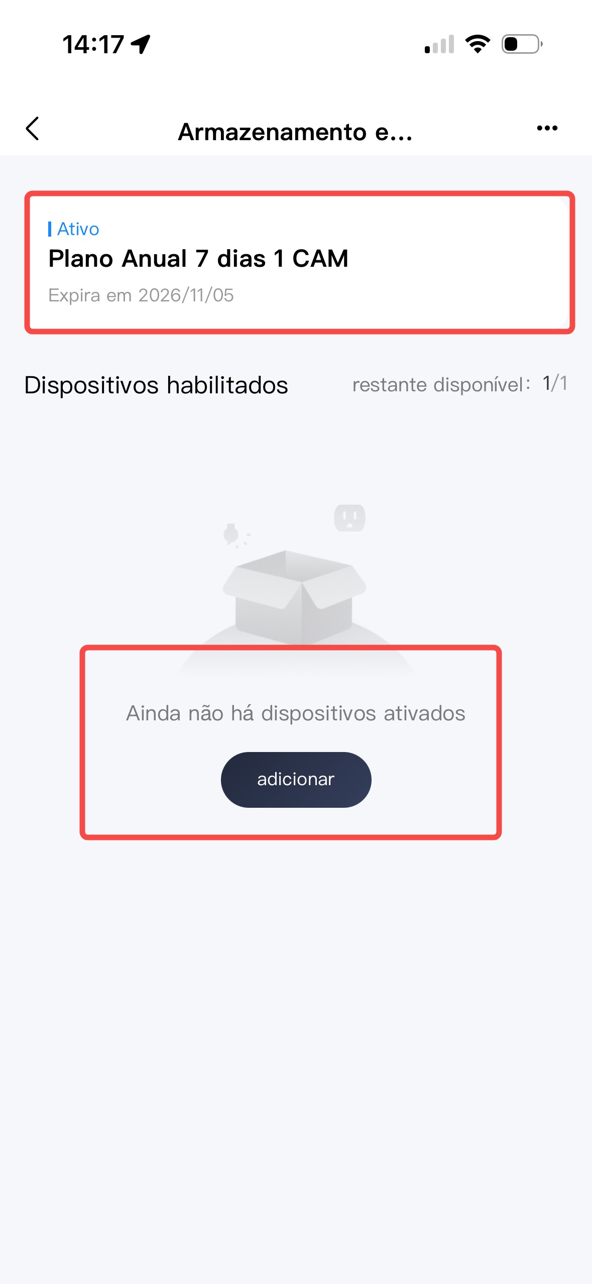 5- Após a contratação, o plano irá solicitar a vinculação do dispositivo, click em adicionar