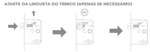 * **Ajuste da Lingueta do Trinco (Apenas se necessário):** Gire a lingueta 360° para ajustar ao fechamento da porta.
