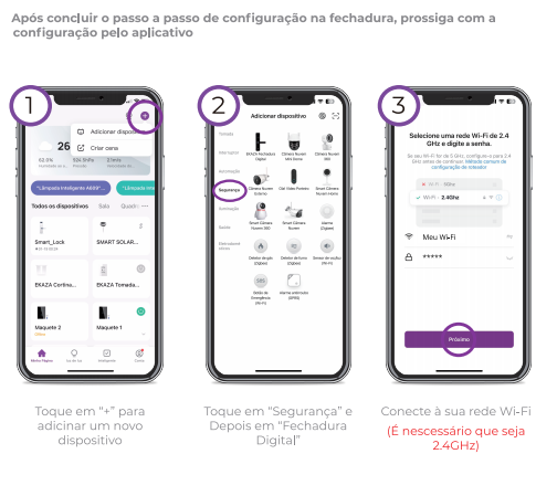 6. A fechadura entrará em modo de pareamento. Continue a configuração no aplicativo.