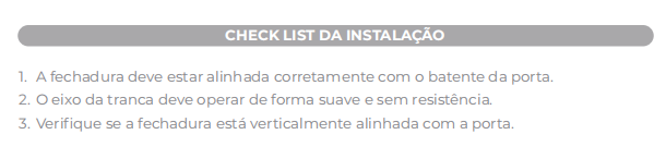 1. A fechadura deve estar alinhada corretamente com o batente da porta.
