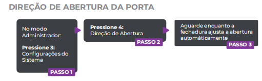 * **Direção de Abertura:** Menu `3` -> `4`. Aguarde o ajuste automático.